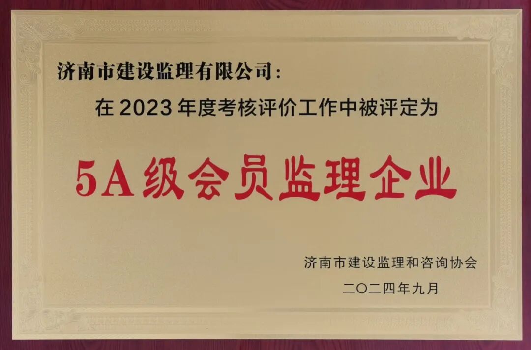 喜報(bào)!濟(jì)南監(jiān)理榮獲中國工程監(jiān)理AAA級(jí)信用企業(yè)及濟(jì)南市5A級(jí)會(huì)員監(jiān)理企業(yè)