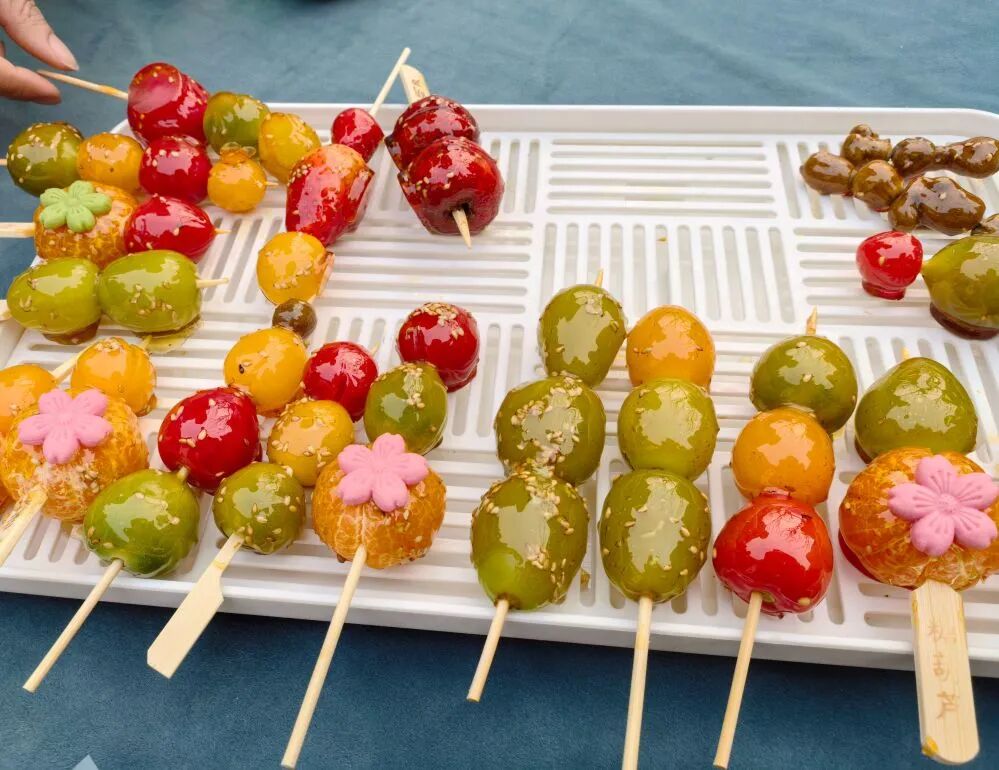 活動現(xiàn)場,首先由盛丹為大家講解糖葫蘆的歷史文化和制作技巧。糖葫蘆作為中國傳統(tǒng)小吃,不僅承載著許多人的童年記憶,更象征著生活的甜蜜與幸福。在盛丹的指導(dǎo)下,大家親手挑選新鮮水果,串成串,再蘸上親手熬制的糖漿,制作屬于自己獨一無二的糖葫蘆?;顒蝇F(xiàn)場彌漫著香甜的氣息,大家互相分享制作心得,感受動手的樂趣。
